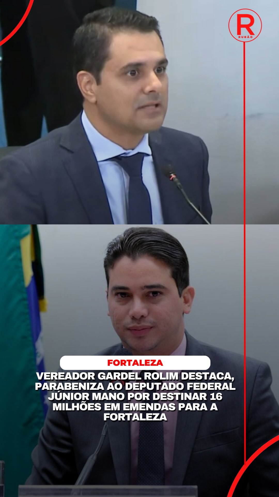 “Agradeço o apoio do deputado Júnior Mano, que destinou R$ 16 milhões em emendas para a saúde de Fortaleza.” — Vereador Gardel Rolim (presidente da Câmara Municipal). PROGRAMA DO RUBÃO